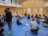 毎年行っているため、高学年の児童は慣れているようで、素早く取り組んでいました。たてわりの班ごとに集まって作業をしていたため、高学年の児童が低学年の児童に優しく教えている姿がたくさん見られました。飾りに使われているものの意味もお話いただき、ありがたいなと思いました。「なわをあんでいくのがむずかしかった。」「できあがってうれしかった。」と感想に書いていました。今年も教えていただいた地域の方ありがとうございました。