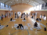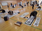2時間目の書き初めは全校児童が体育館に集まり、毛筆の習字をしました。