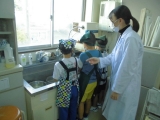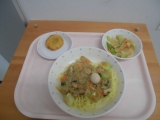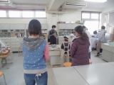 給食の時間に、実際にくずもちになっているのを見て、「うれしい。」と言っていました。栄養士の先生に、作っている様子を見せていただきました。食べてみると「おいしい。」と言いとても満足そうでした。