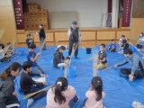 毎年行っているため、高学年の児童は慣れているようで、素早く取り組んでいました。たてわりの班ごとに集まって作業をしていたため、高学年の児童が低学年の児童に優しく教えている姿がたくさん見られました。飾りに使われているものの意味もお話いただき、ありがたいなと思いました。「なわをあんでいくのがむずかしかった。」「できあがってうれしかった。」と感想に書いていました。今年も教えていただいた地域の方ありがとうございました。