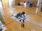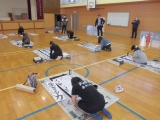 2時間目の書き初めは全校児童が体育館に集まり、毛筆の習字をしました。