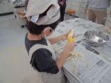 12月10日(水)1・2年生が給食にでるあめりか芋の皮むきをしました。一人ずつピーラーを使って、ていねいに皮をむいていました。2年生が1年生にむき方を教える場面もありました。2年生は昨年経験しているため、手際よく行うことができました。むいた芋を洗って、最後は給食室に届けました。保護者の方にも見守っていただきました。