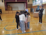「成功のかけらを集めよう」という題材でボトルフリップやパイプライン、〇×オセロなどいろいろな種目で行い、今回は大繩チャレンジでした。1年生と4年生がどうすれば回数が増えるか話し合いながら、挑戦していきました。チャレンジ後に失敗した原因について意見を出す中で、どのようにしたら自分の言いたいことが伝わるか考え、伝えられるようになることがこの学習の大きな目標の一つです。校内研究でいろいろな学年を組み合わせて実践しました。今日は全教員で授業を見たあとに、協議会をして教員同士で意見を交わしました。式根島小学校の子供たちが、自分の意見を伝え、友達の意見を聞く中でよりよい方法を考える力を身に付けてほしいと思っています。