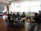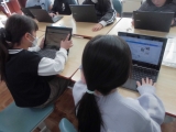 1月27日 3・4年生は島の子発表会で『コーガ石探検隊!クイズでせまるそのヒミツ』として新島見学などで調べて分かったことをクイズにして出題します。その準備として、総合的な学習の時間で、一人一人が自分の端末を使ってスライドを作成していました。中には共同で作業している児童もいました。3・4年生でもタイピングが早く文章を速やかに入力していました。クイズができあがるのが楽しみです。島の子発表会に向けて準備が進んでいます。
